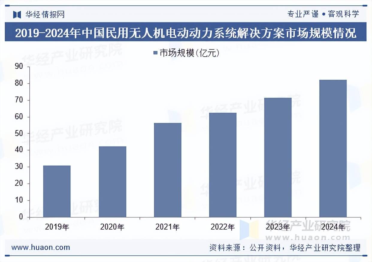 伴跟着我国无刷电机期间日益熟谙,凭借其成果高、寿命长、注重绵薄等优点,在民用无东说念主机中庸俗应用,况兼国内企业在电机想象、制造工艺等方面不休校正,更是晋升了电机的成果、功率密度和可靠性。此外,电调期间的发展使得电机适度愈加精确,豪迈得志无东说念主机复杂的航行姿态适度需求,民用无东说念主机电动能源系统搞定决策行业限度在连年完了快速增长,2024年粗略增至82.2亿元。