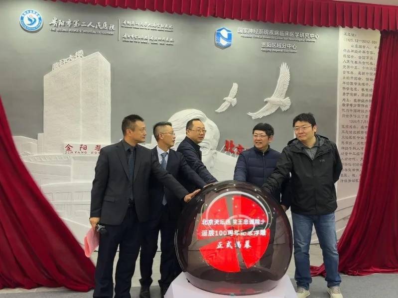 随后,北京天坛病院行家吴震、卢国强,贵阳市卫健局党委通知娄果以及市二医(金阳病院)党委通知梁跃东、副院长徐俊共同为挂念雕像揭幕。整体参会东谈主员集体合影迷恋,以安详的典礼抒发对王诚意院士的潜入牵挂与敬意。