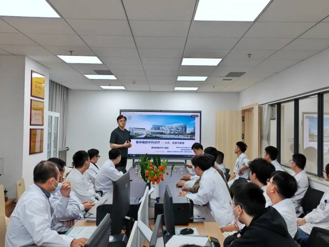 张俊廷主任、王兴朝博士为医护东谈主员带来了学科发展的新想路,助力普及神经疾病养息的表率化水平;吴震、桂松柏、王嵘等行家演示先进手术技能,分享前沿养息理念;仲丽芸、贺欣、富晶等看守行家深入临床一线与市二医(金阳病院)看守团队共同探讨疑难病例。