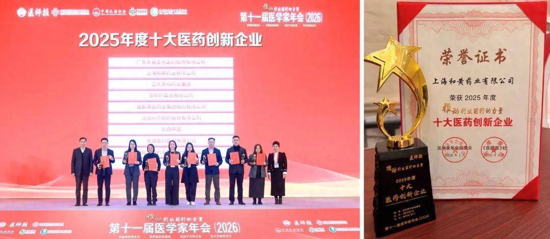 在这场聚焦行业前沿的嘉会中,上海和黄药业有限公司凭借其在中医药限制的系统性创新与不凡建树,斩获“鼓励行业前行的力量”之“2025年度十大医药创新企业”荣誉。这一荣誉不仅是对企业赓续创新实力的充分细则,更是对其在新期间引颈中药产业交融转型中所展现出的前瞻性与实行力的高度招供。
